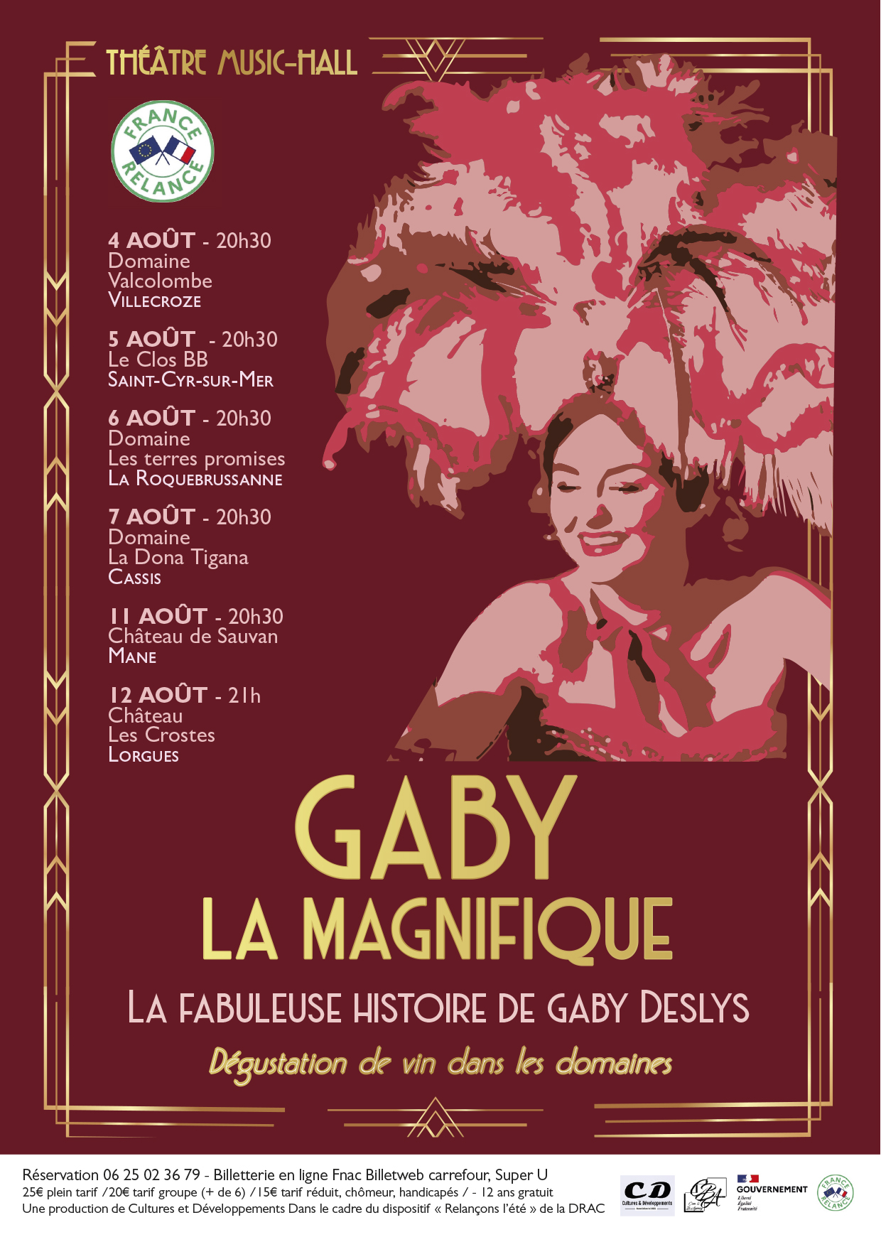 Tournée soutenue par la DRAC PACA dans le cadre du plan de relance culture "Relançons l'été 2021". Diffusion dans de nouveaux lieux de cultures, hors zone urbaine, dans des domaines viticoles et lieux patrimoniaux.